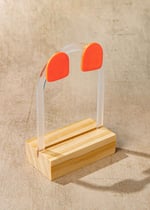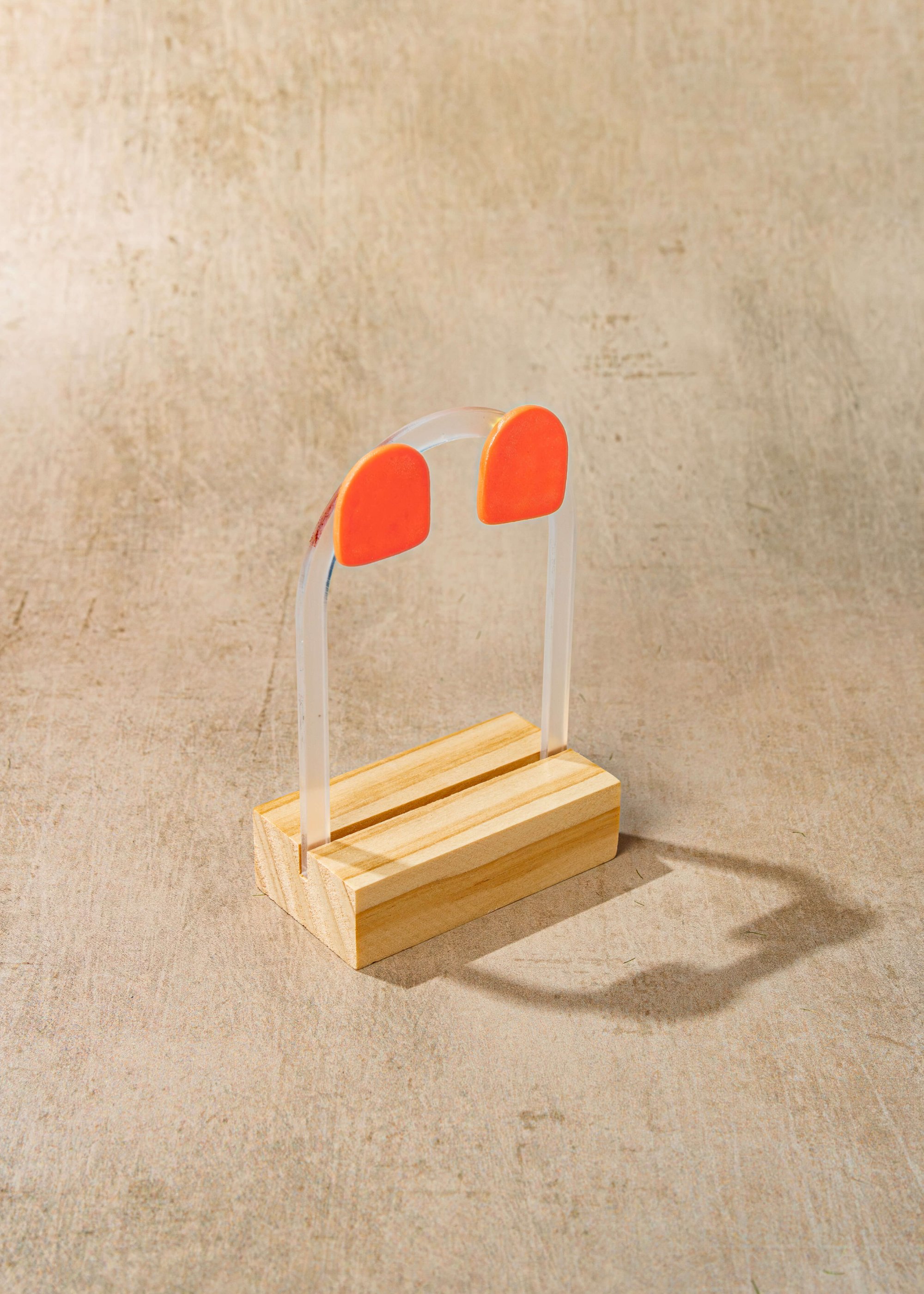 These arch-shaped earrings are hand-built using a white stoneware and feature bold, solid colors.