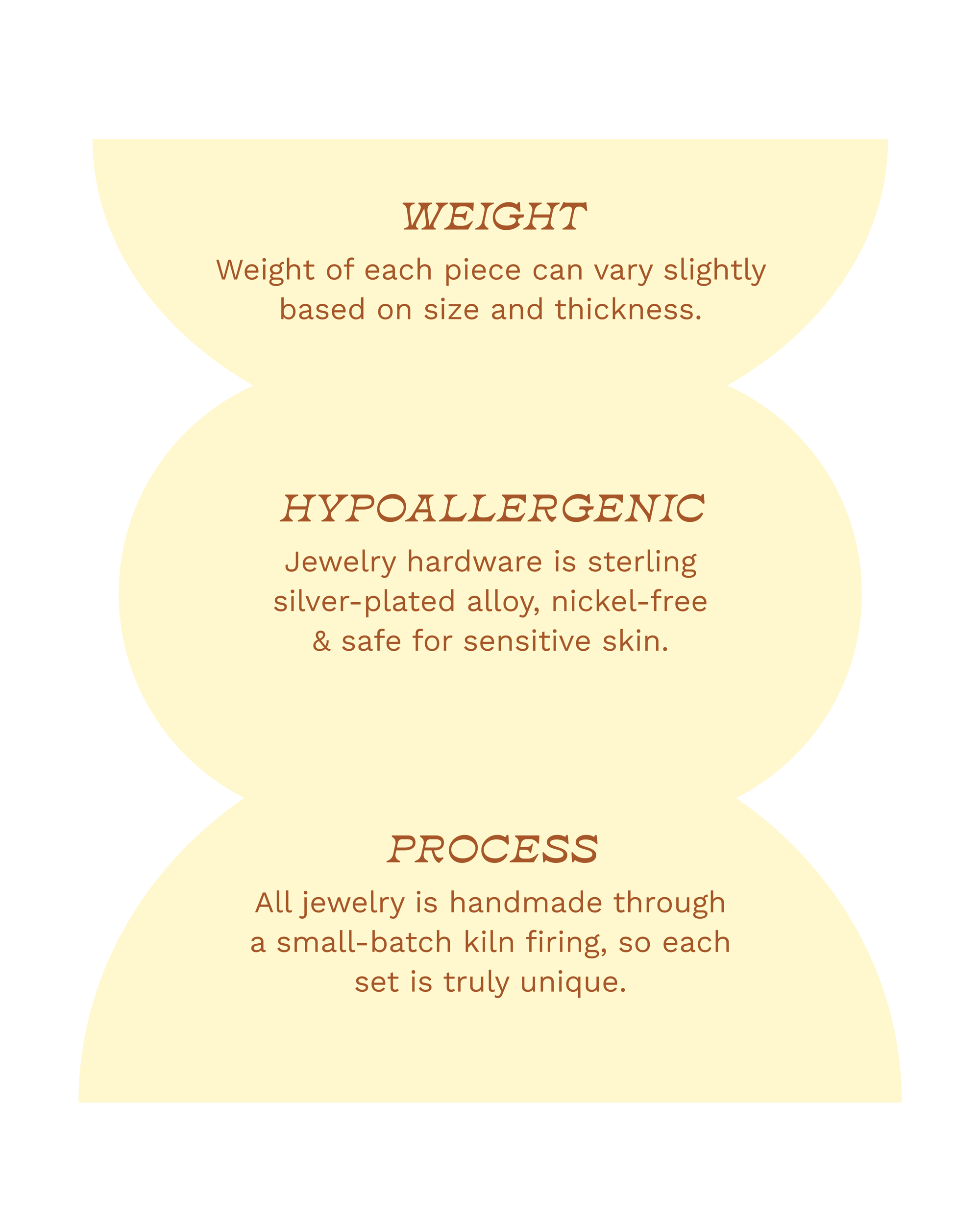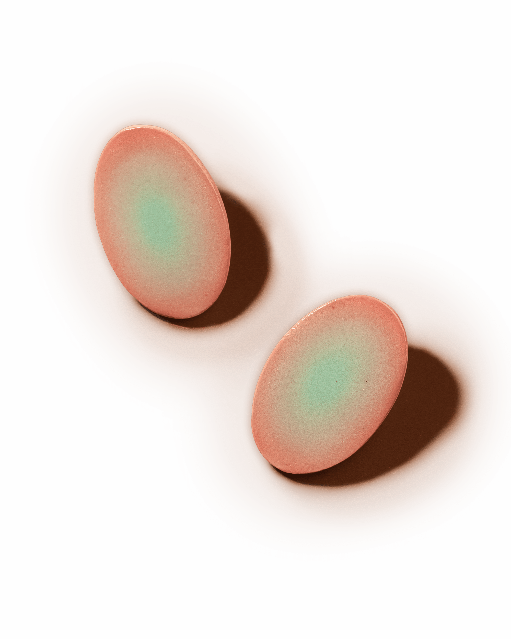 These oval-shaped earrings are hand-built using a white stoneware and feature an airbrushed glaze application.