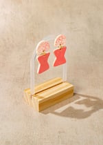 These two-piece hourglass-shaped earrings are hand-built using a white stoneware and feature a dappled glaze effect.
