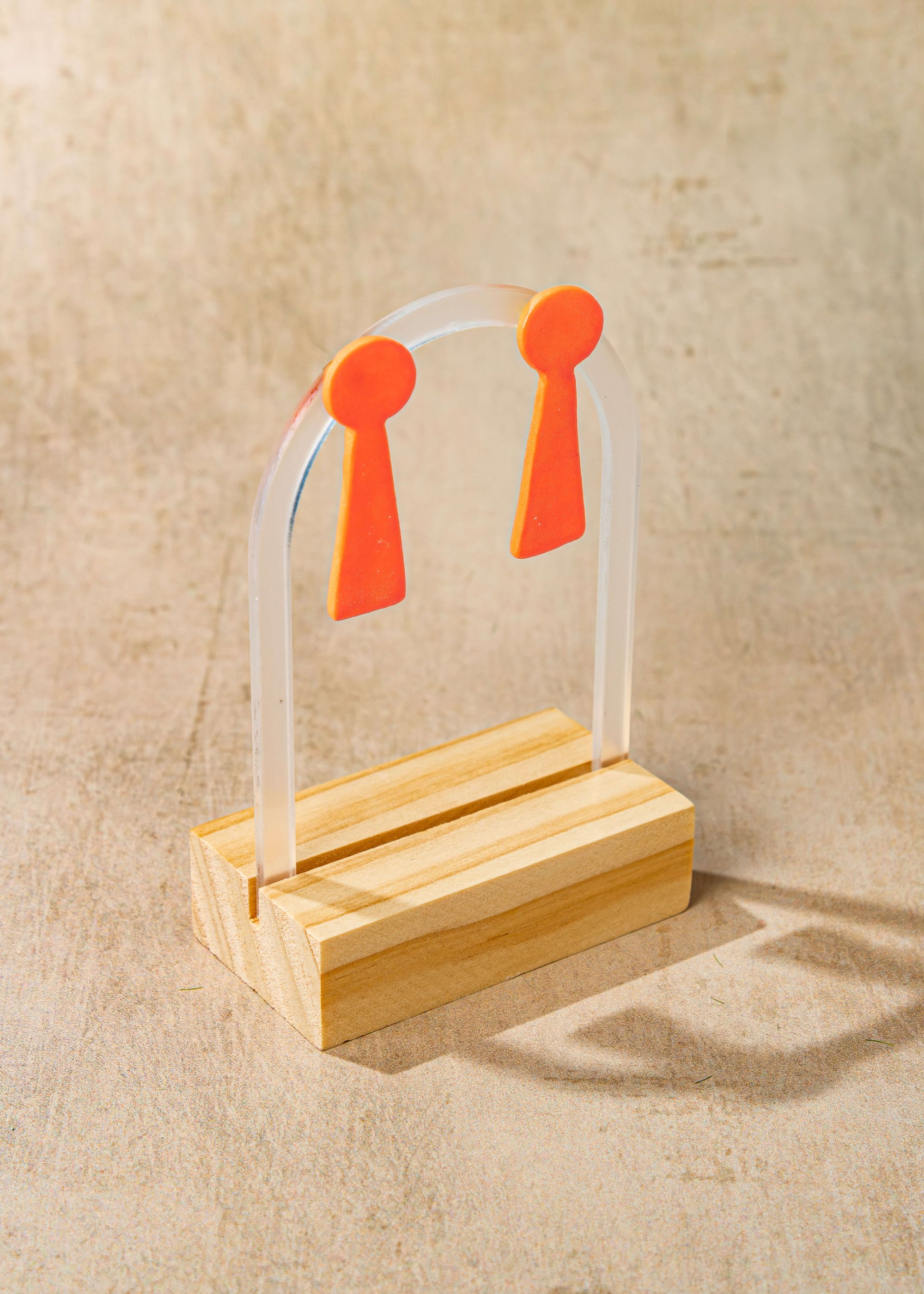 These keyhole-shaped earrings are hand-built using a white stoneware and feature bold, solid colors.